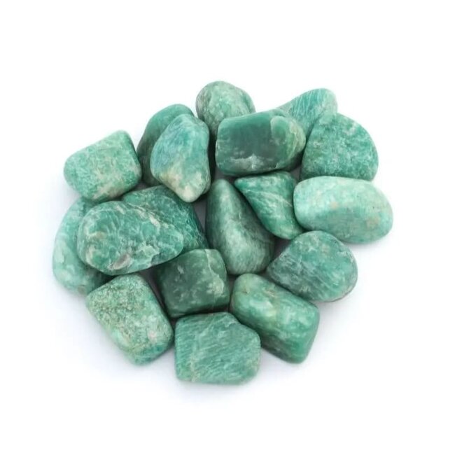 Amazoniet is een krachtig mineraal dat het mentale en etherische lichaam in balans brengt. Het kalmeert de zenuwen en stimuleert creatieve expressie, terwijl het ook helpt bij het doorzien van illusies. Amazoniet opent en heelt de hart- en keelchakra's, en harmoniseert de mannelijke en vrouwelijke energieën. Dit brengt vreugde, helderheid en begrip van universele liefde. Bovendien absorbeert het stralingen van mobiele telefoons en beschermt het tegen elektromagnetische vervuiling.