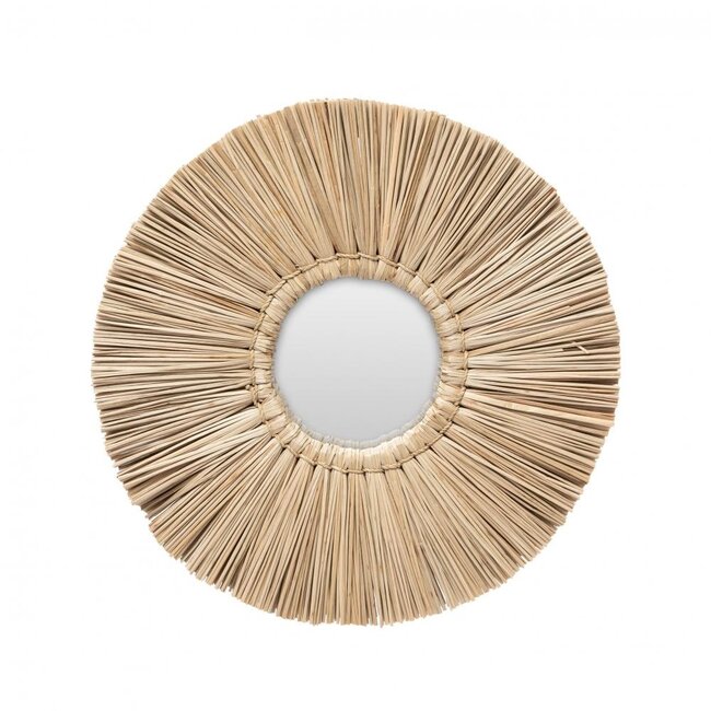 Ontdek de perfecte combinatie van natuurlijke materialen en verfijnde uitstraling met deze prachtige spiegel. De rustieke textuur van geweven gras omlijst een heldere, centrale spiegel, waardoor een unieke mix van boho-stijl en functionaliteit ontstaat. Deze spiegel voegt een warme, organische sfeer toe aan elke ruimte in huis.
