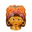Deze handgemaakte bloempot van dolomiet is vormgegeven als een vrouw met fruit op haar hoofd. De warme tinten oranje, roze en bruin zorgen voor een vrolijke en mediterrane uitstraling in elk interieur.