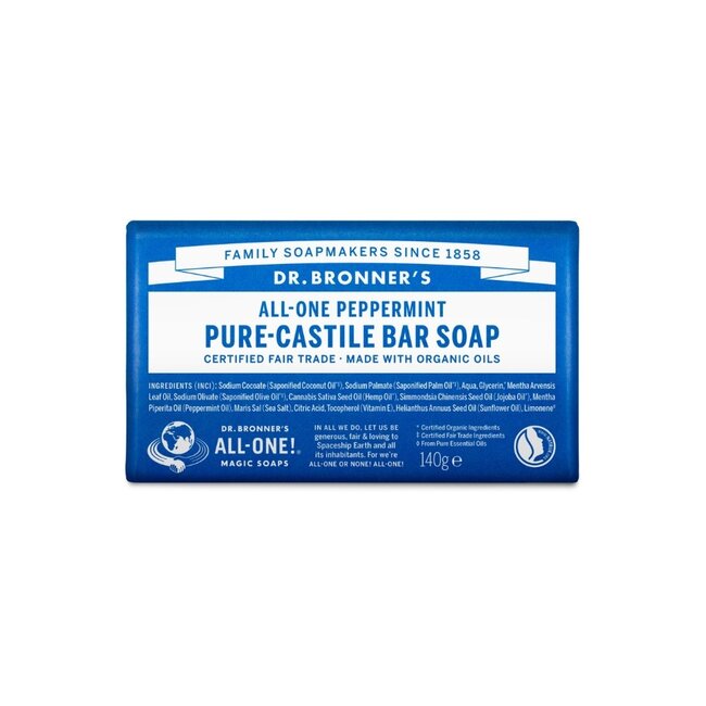 Dr. Bronner staat bekend om zijn toewijding aan kwaliteit en duurzaamheid. Hun zeepblokken behouden de glycerine voor hydratatie, zijn super-gevoed voor een zachte schuimervaring, en bevatten geen chelatiemiddelen, kleurstoffen, bleekmiddelen of synthetische geuren. Met pure biologische essentiële oliën en natuurlijke vitamine E, biedt deze zeep een verfrissende ervaring die goed is voor jou en de planeet.