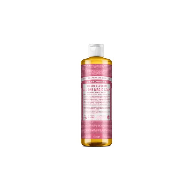 Water, organische kokosolie,* kaliumhydroxide,† organische palmolie,* organische olijfolie,* natuurlijke kersenbloesemgeur, organische hennepolie, organische jojobaolie, citroenzuur, tocoferol * gecertificeerde fairtrade-ingrediënten † geen residuen na het verzepen van oliën in zeep en glycerine.