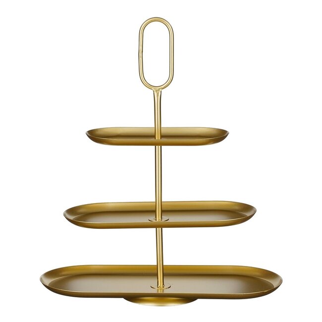 Deze gouden etagère van metaal is een subtiel statement in huis. Met drie lagen biedt hij ruimte om hapjes, fruit of decoraties op een elegante manier te presenteren. De zachte glans van het goud geeft elk moment een vleugje luxe, zonder te overheersen. Dankzij het moderne, verfijnde ontwerp past hij moeiteloos bij zowel een feestelijke tafel als een rustige interieurstijl. Zet hem in de keuken, eetkamer of woonkamer, een veelzijdig stuk dat sfeer brengt en functioneel blijft.
