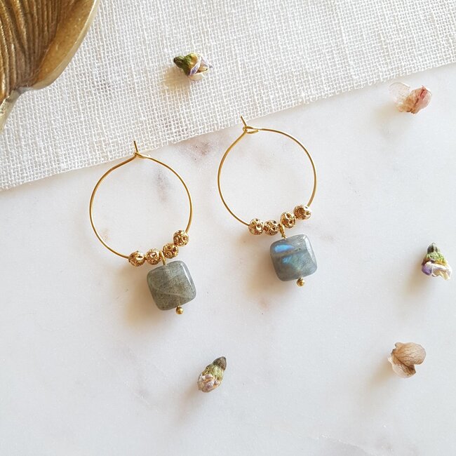 Deze oorbellen zijn gemaakt van duurzaam roestvrij staal en zijn zorgvuldig ontworpen met oog voor detail. De labradoriet edelsteen, die de oorbellen siert, voegt een prachtige iriserende schittering toe aan je uitstraling. De natuurlijke kleurenspel van de labradoriet stenen geeft deze oorbellen een unieke en fascinerende uitstraling. Met een diameter van 25 mm zijn deze oorbellen een subtiel en elegant accessoire dat je look verfraait.
