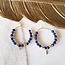 Laat je betoveren door onze met liefde handgemaakte lapis lazuli oorbellen. Gemaakt van duurzaam roestvrij staal, stralen deze oorringen met hun ambachtelijke perfectie. Met een indrukwekkende diameter van 3 cm worden ze versierd door een centrale lapis lazuli edelsteen, verfraaid met subtiele gouden kraalaccenten voor een vleugje luxe. Elk paar is een uniek kunstwerk dankzij de natuurlijke variaties van lapis lazuli. De oorbellen worden geleverd met een eigen etui, klaar om te schitteren in jouw accessoirecollectie. Voeg vandaag nog de tijdloze elegantie van lapis lazuli toe aan je stijl met onze prachtige oorbellen.