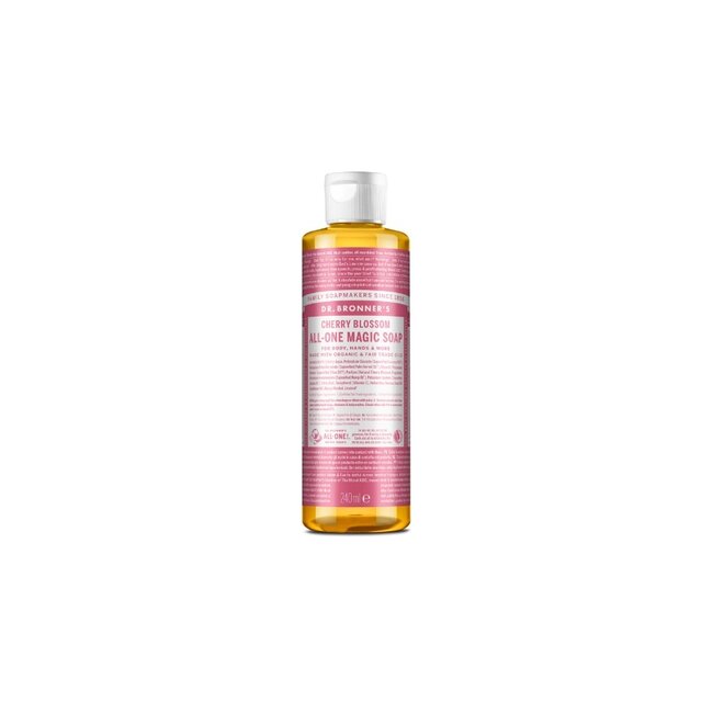 Water, organische kokosolie,* kaliumhydroxide,† organische palmolie,* organische olijfolie,* natuurlijke kersenbloesemgeur, organische hennepolie, organische jojobaolie, citroenzuur, tocoferol * gecertificeerde fairtrade-ingrediënten † geen residuen na het verzepen van oliën in zeep en glycerine.