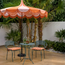 De sierlijke franjes langs de rand geven de parasol een elegante en licht retro uitstraling, waardoor hij niet alleen functioneel is, maar ook een echte blikvanger. Perfect om een gezellige zithoek te creëren waar je kunt genieten van lange, zonnige dagen.