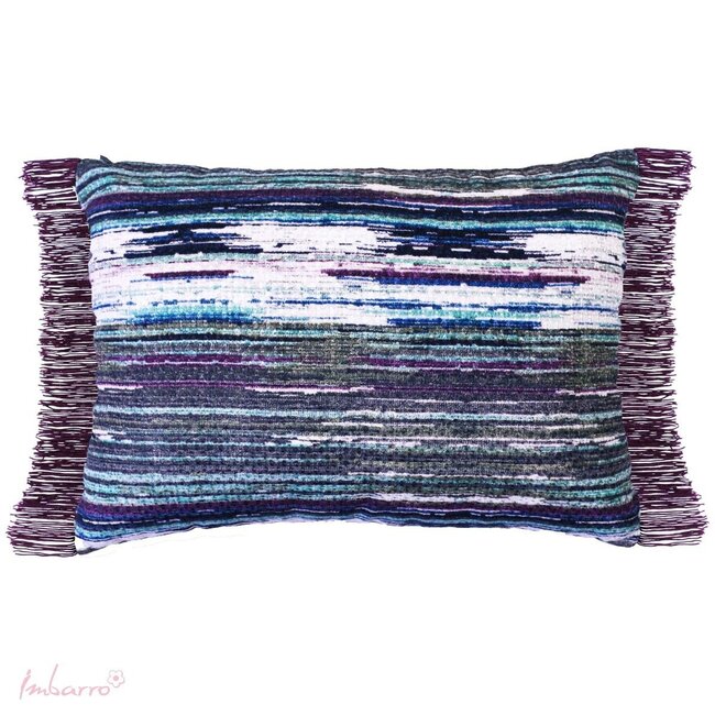 Dit prachtige kussen heeft een schitterend patroon dat je doet denken aan zowel het verleden als de toekomst. De combinatie van kleuren en materialen maakt het kussen veelzijdig en geschikt voor allerlei interieurs. Met dit kussen kun je eindeloos combineren en variëren. Het is verkrijgbaar in twee kleurstellingen.