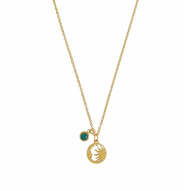 Stainless Steel Ketting Goud Maan & Zon Hanger
