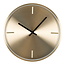 Deze elegante wandklok in goudkleurig aluminium is een echte blikvanger aan de muur. Het minimalistische design met slanke wijzers en een warme metallic glans straalt rust en klasse uit.