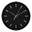 Voeg stijl en elegantie toe aan je interieur met deze moderne wandklok in zwart met gouden details. De matte afwerking en de minimalistische wijzerplaat geven de klok een tijdloze uitstraling. Het stille uurwerk zorgt voor rust in huis, waardoor de klok ideaal is voor de woonkamer of slaapkamer.