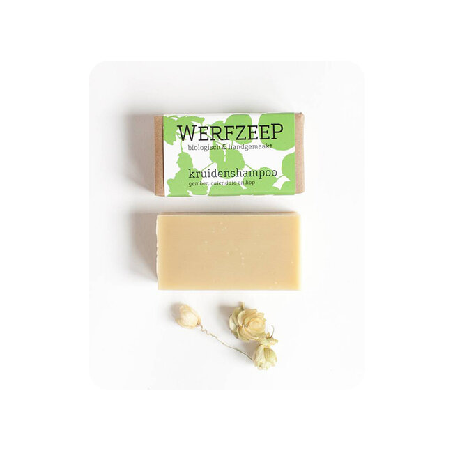 Onze kruidenshampoo bevat extracten van hop, calendula, brandnetel en Oost-Indische kers uit onze eigen bostuin, samen met een maceraat van biologische gember van Het Blauwe Huis. De mix van etherische oliën is zorgvuldig samengesteld om je hoofdhuid te ondersteunen, terwijl de basis bestaat uit verzorgende oliën zoals karitéboter, jojoba- en olijfolie.